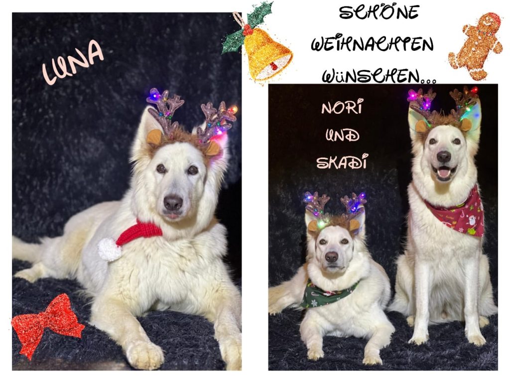 G-Wurf im neuen Zuhause Die Bilder wurden alle von den neuen Welpeneltern gemacht und wir setzen Ihr Einverständnis zur Veröffentlichung auf unserer Homepage voraus.Wir sind auch bemüht, die Personen auf den Bildern und vor allem Kinder nicht darzustellen. 24.12.2025Luna, Nori und Skadi wünschen allen schöne Weihnachten 20.04.2025Skadi, Nori und Luna wünschen schöne Ostern 30.03.2025Herzlichen Glückwunsch an unseren G-Wurf zum 1. Geburtstag von uns allen. Wir wünschen euch eine tolle Geburtstagsparty und bleibt gesund. Nori mit ihren Geburtstagsgeschenken und dem Festessen Franzi wünscht ihren Geschwistern eine tolle Geburtstagsparty Auch Ylvi wünscht Ihren Geschwistern einen tollen Geburtstag 24.12.2024Nori wünscht mit Skadi und Luna allen schöne Weinachten 24.12.2024Ylvi wünscht auch allen schöne Weihnachten Geordy 02.06.2024Geordy hat nun auch Stehohren, so süß 25.05.2024 Franzi 25.05.2024 Nori 14.06.2024Nori ist in ihrem neuen Zuhause angekommen.Jetzt darf sie mit Luna und Skadi, ihrer Schwester, aufwachsen. Auf den Bildern sehen sie alle drei schon so zufrieden aus, ein richtiges Rudel. Danke Bianca Schmoll und Familie 01.06.2024 25.05.2024Nori in ihrem neuen Zuhause Ylvi 25.05.2024Ylvi in ihrem neuen Zuhause